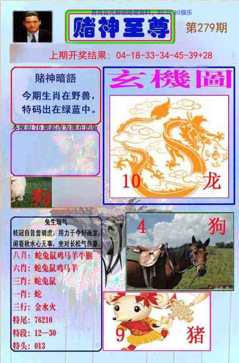 283期:中特两句经/管家婆玄机/龙仔凑热闹/彩霸王出肖料/狗不理 |